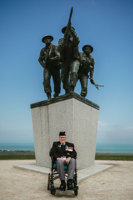 Candid photographs of veterans at remembrance events, often commemorating the anniversary of D-Day, in France and the UK.